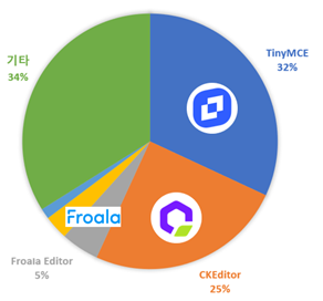 그 뒤를 25%의 점유율로 CKEditor가 바짝 쫓고 있습니다. 2003년 FCKEditor로 시작해 글로벌 개발자들에게 인지도를 쌓았으며,