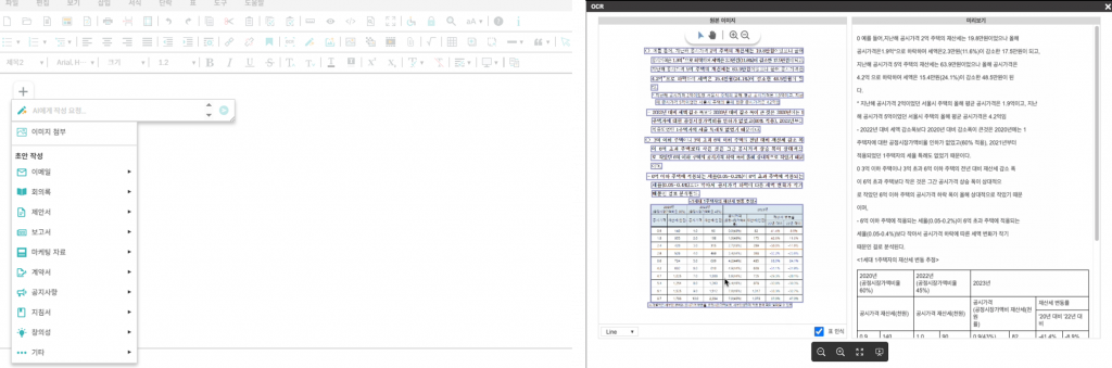 특히, 자체 개발한 AI OCR 기술은 이미지 속 표 구조까지 인식해 정확한 HTML 테이블로 변환하는 독자적인 기술력을 보유하고 있습니다.