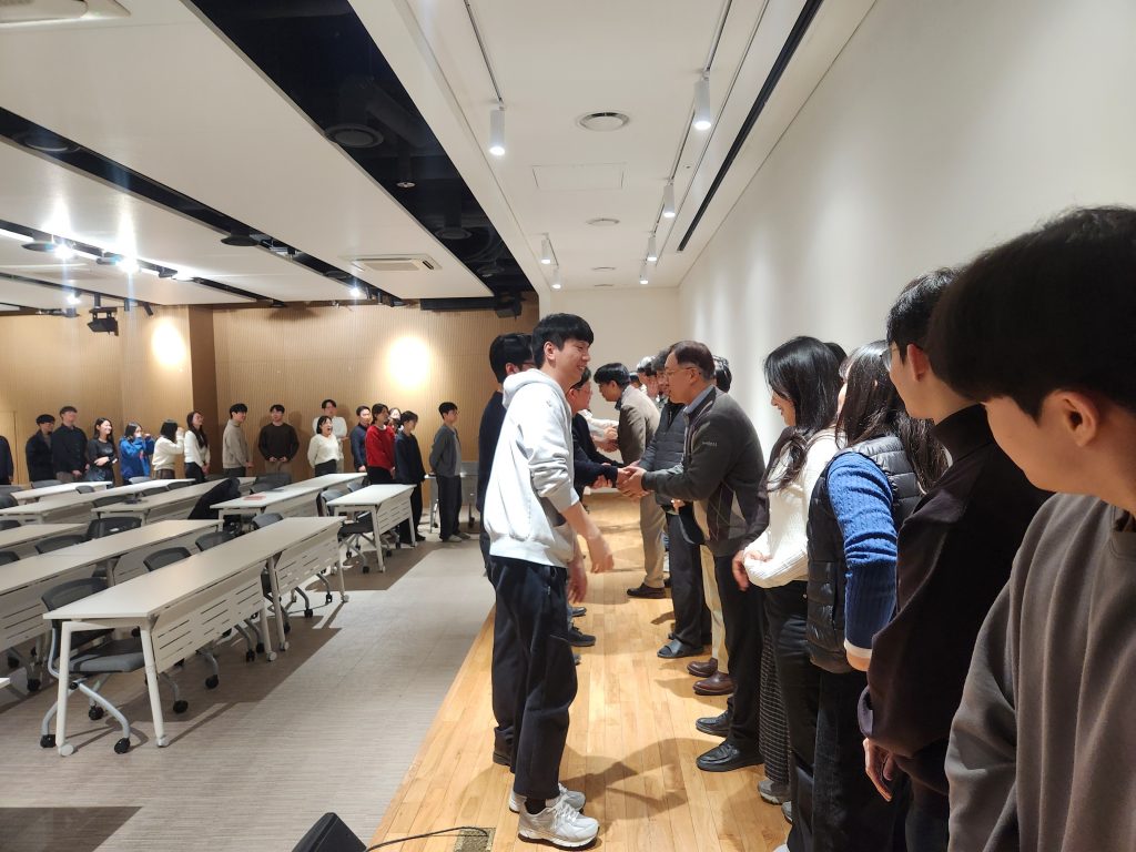 발표 세션이 끝난 후에는 전 임직원이 돌아가며 악수를 나누는 시간을 가졌습니다.