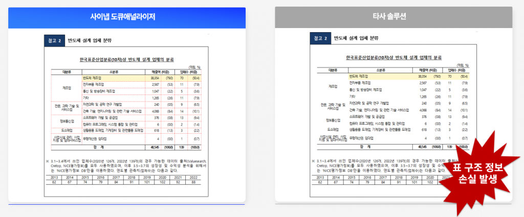 단지 테두리 속성이 “투명”으로 설정되어 있을 뿐입니다. 따라서 셀의 행·열 정보, 데이터 간 관계를 정확히 추출할 수 있습니다.
