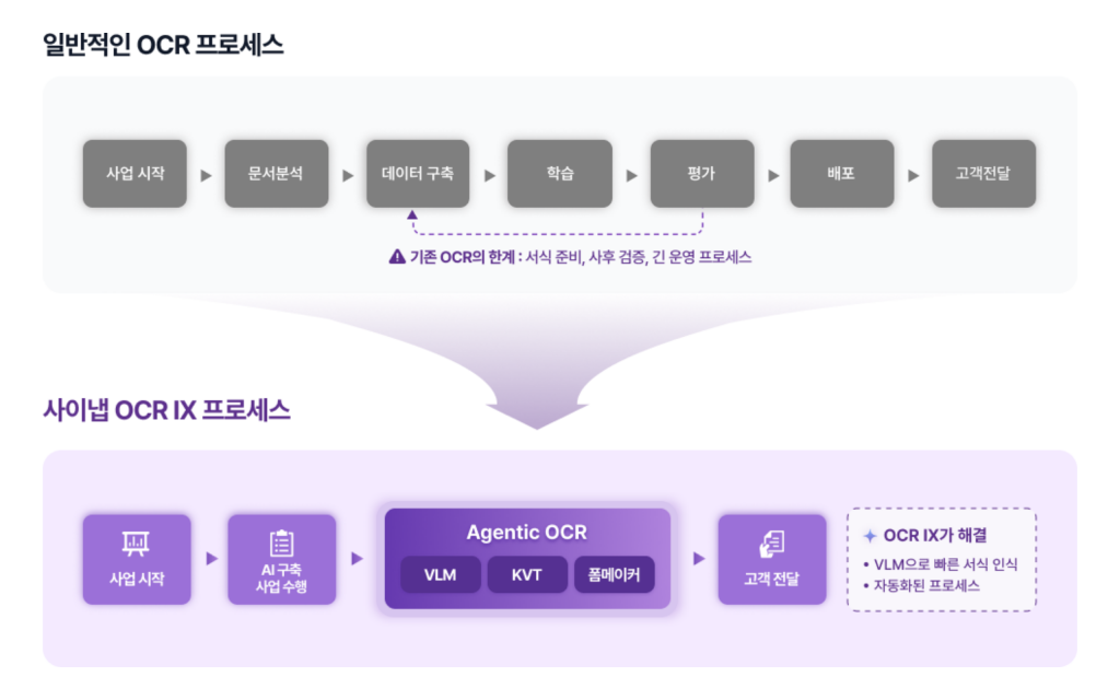 기존 대표 AI 솔루션 ‘사이냅 OCR 프로’는 지난해 9월 누적 레퍼런스 200건을 돌파할 정도로 인기를 끌었다. 그러나 OCR IX는 단순한 기술적인 업그레이드를 넘는다. ROI(투자수익률)에 초점을 맞춘 가장 빠르고 경제적인 솔루션으로 소개했다.